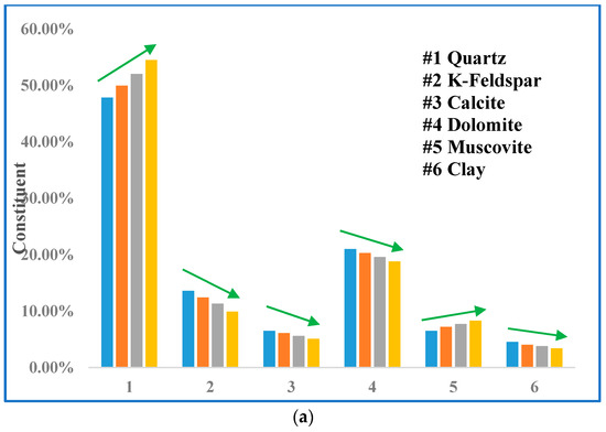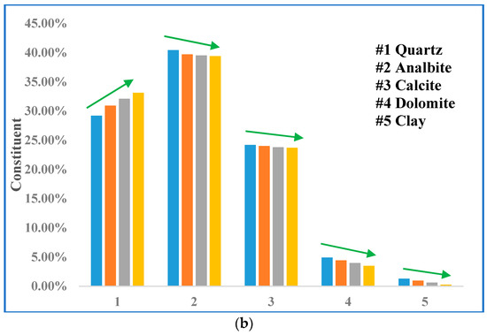 Mineral content alteration with varied Sc-CO2 injection time. (a) sample at depth of 9848 ft; (b) sample at depth of 9850 ft.