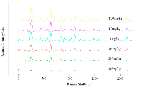 Spectrum of pesticide mixture characteristic peaks change with gradient concentration.