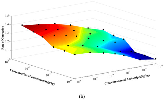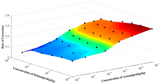 where Z is the correction coefficient, A is the concentration value of acetamiprid, D is the concentration value of deltamethrin.