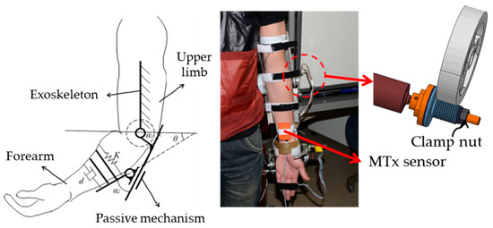 where, α1 and α2 is the rotational angle of the device and the angle of the passive rotational joint in the exoskeleton for avoiding the misalignment of elbow joint [7].