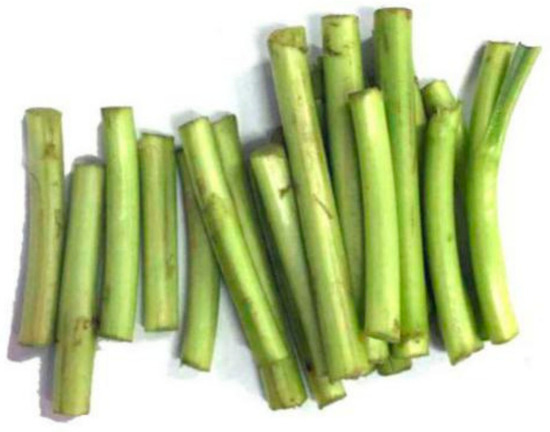 The artemisia selengensis straws used in this study were collected form Baguazhou, Nanjing (30°10’ N, 118°49’ E). And the picture of atemisia selengensis straw is shown in Figure 1. The collected straws had an average moisture content of 92.16% and an average diameter of 6 mm. Then, the straws were cut into 3 cm long pieces and stored for the pyrolysis experiments. The contents of artemisia selengensis straws were measured using the Van Soest. The content of hemicellulose, cellulose, lignin and ash is shown in Table 1. As can be concluded from Table 1, artemisia selengensis straws have more cellulose than rice straws, therefore, they are hard to mush. According to Luo and Wang’s researches, the main product of cellulose pyrolysis is volatile, and volatile could make the biochar produced have more potential with more micropores [16,17]. Thus, the biochar produced by artemisia selengensis has porous properties. Furthermore, artemisia selengensis straws have little ash, which means there are little non-organic impurities in the biochar, which is a great condition for producing good adsorptive biochar.