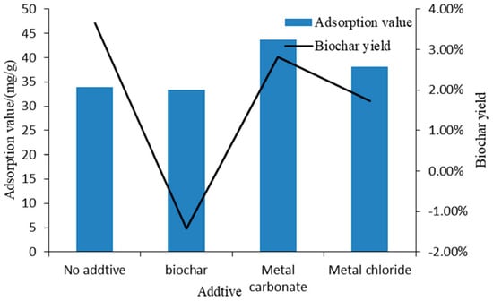 Effect of additive on the biochar yield and adsorbability.