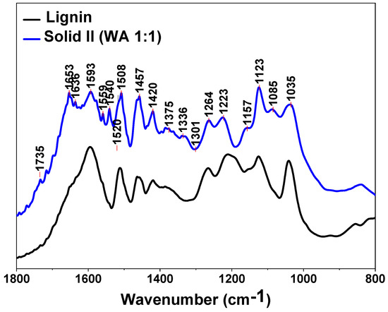 FTIR spectra of Solid II and commercial lignin.
