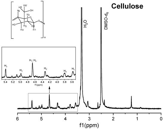1H nuclear magnetic resonance (NMR) spectrum of commercial cellulose.