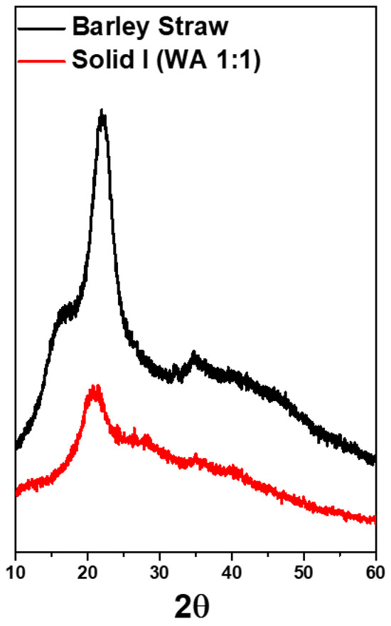X-ray diffraction (XRD) spectra of raw barley straw and Solid I.