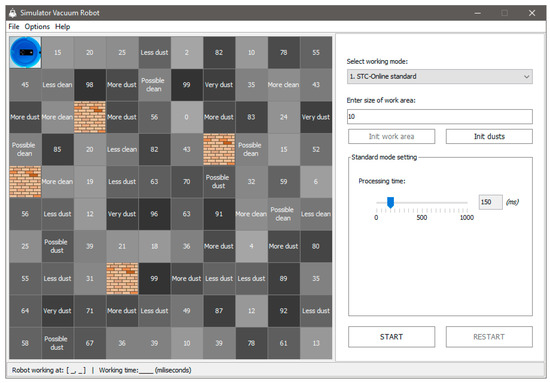 A major approach is the decomposition of the working environment into smaller, simpler, and non-overlapping areas; the robot covers each small area by a primitive motion, such as the ‘boustrophedon’ (or zig-zag) move. The Spiral-STC algorithm proposed by Gabriely & Rimon [13] divides the map into ‘megacells’, then a spanning tree is generated to connect all ‘megacells’ to provide coverage by following the spanning tree. In multiple tasks, Manuel, et al. have investigated how a robot locally finds the best paths and coverage actions to keep the desired coverage level over the environmental dynamic [5]. The investigation of a robot proposed an on-line coverage algorithm in grid environments, in order to find an optimal way in simulations [13]. In machine learning approaches, some studies have been concerned with K-mean clustering [12], neural networks [14] and genetic algorithms [15] for finding the coverage path of a mobile robot. In monitoring industry robot applications [15,16,17,18,19], these robots applied the approaches of the cluttered environment with limited onboard energy for robot monitoring [15] and cleaning robot in the control for coverage path [16].