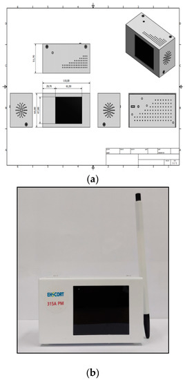 A laser-based light-scattering PM2.5 sensor monitor (ESCORTAIR, ESCORT, Seoul, Korea) (weight <300 g, volume <510 cm3) consisted of an optical particle counting (OPC) PM sensor (INNOSIPLE1), CO2 sensor, temperature relative humidity sensor, data transfer networking module and light-emitting diode (LED) display screen (Figure 1). In the ESCORTAIR, the sensing volume is illuminated with a laser and airborne particles are counted and processed one at a time. There were various IRMs commercially available in South Korea. In this study, however, we chose ESCORTAIR as they allowed us to directly transfer data to our data server using its Wi-Fi function.