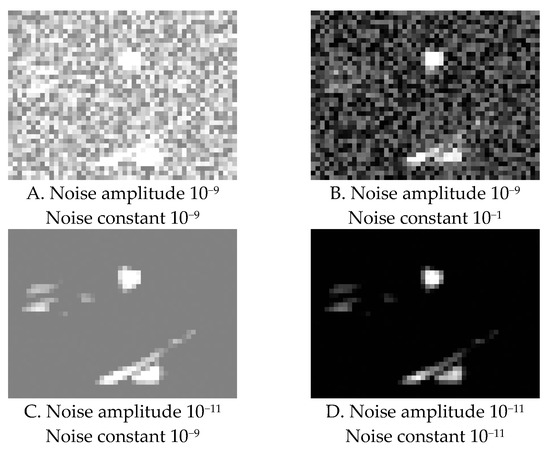 Examples of an effect of different noise parameters on the saliency map. Adding more noise only changes the saliency map, which is used as initial data, but does not modify the integration and firing process itself.