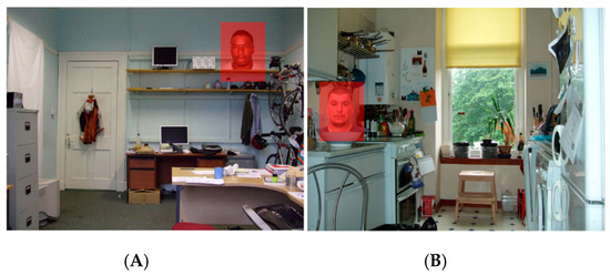 Six-month-old infants reliably detect faces within circular arrays containing various objects as distractors, regardless of their orientation [12,13,14]. However, using grayscale images, non-human primate faces or varying the number of distractors in a display has been shown to impact performance [15,16]. Studies that have used more realistic scenes rather than circular arrays or grids have found increasing sensitivity to faces across the first year [17,18]. Collectively, these studies suggest that developing attentional abilities [18], oculomotor control and sociodemographic factors might also impact an infant’s ability to orient to a face [17]. A recent study reported that infants aged three- to twelve-months show consistent detection (as measured via first-look orienting) of faces in complex real-world scenes. This suggests that infant face orienting might be improved within naturalistic scenes compared to more artificial presentations [19], highlighting the role of context and visual experience in guiding fixations toward salient objects such as faces.