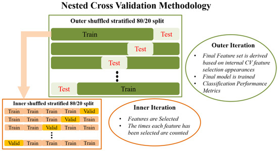One of the limitations of this study concerns the relatively high standard deviation of the classification performance metrics, especially specificity. Increasing the number of subjects, should they become available, would probably help reduce the standard deviation of these results and provide further assurance of model robustness. Furthermore, the CV methodology would benefit greatly from a larger number of subjects, given that in nested CV, the data is being split twice, internally and externally, reducing the number of subjects in the internal train and test subsets.