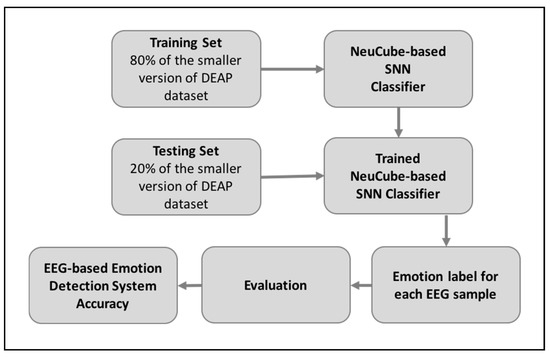 In this section, we illustrate our methodology along with implementation details of our proposed solution. It consists of three stages: the construction of smaller versions of the DEAP dataset, classification with the NeuCube-based SNN classifier, and evaluation of the trained classifier’s accuracy. Figure 5 shows the structure of the proposed solution model. Using this model, we performed four experiments, each of which used different sample sizes.