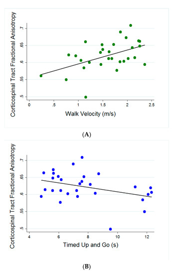 - Baird, J.F.; Hubbard, E.A.; Sutton, B.P.; Motl, R.W. The relationship between corticospinal tract integrity and lower-extremity strength is attenuated when controlling for age and sex in multiple sclerosis. Brain Res. 2018, 1701, 171–176. [Google Scholar] [CrossRef] [PubMed]