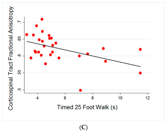 - Hubbard, E.A.; Wetter, N.C.; Sutton, B.P.; Pilutti, L.A.; Motl, R.W. Diffusion tensor imaging of the corticospinal tract and walking performance in multiple sclerosis. J. Neurol. Sci. 2016, 363, 225–231. [Google Scholar] [CrossRef] [PubMed]