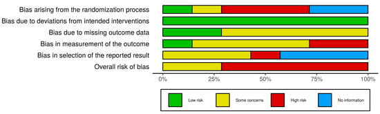 Each aforementioned risk of bias domain was classified as ‘High’, ‘Some concerns’, ‘Low’, and ‘No Information’.