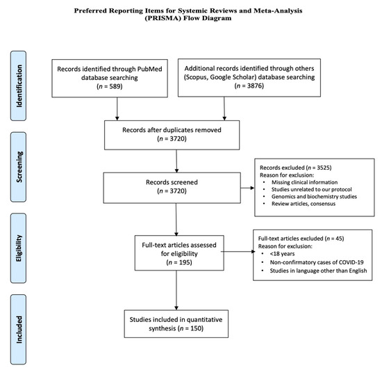 Based on our search criteria, we found a total of 4465 studies from all the databases including PubMed (n = 589), Google Scholar (n = 3720) and Scopus (n = 156); 745 of these were identified as duplicates. Finally, we screened 934 studies for title and abstracts, and reviewed 195 full-text studies in accordance with our study objective. Finally, we conducted a systematic review and quantitative analysis of 134 studies (comprising of 171 patients) in accordance with our inclusion and exclusion criteria. Of the 134 included studies, 106 were case reports, 28 were case series. Additionally, 16 retrospective observational studies were not included in statistical analysis but were reported separately, as the substantial data for severity and fatality of COVID-19 was not available from these studies (Figure 1)