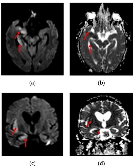 - Freeman, C.W.; Masur, J.; Hassankhani, A.; Wolf, R.L.; Levine, J.M.; Mohan, S. COVID-19-Related Disseminated Leukoencephalopathy (CRDL): A Retrospective Study of Findings on Brain MRI. Am. J. Roentgenol. 2020. [Google Scholar] [CrossRef]