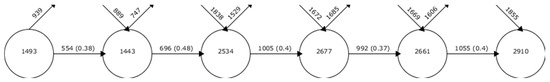 - Determination: Various temporary periods of literary study were configured. These were employed to analyze the development of nodes in different time intervals. Six periods were established (P1 = 1963–2008; P2 = 2009–2011; P3 = 2012–2013; P4 = 2014–2015; P5 = 2016–2017; and P6 = 2018–2019). The criteria for configuring the periods focused on originating intervals that had a similar number of publications. However, for authorship, only one period was configured, which occupies the entire analytical range (PX = 1963–2019). Likewise, to determine the strength of the association between intervals, the volume of keywords in common was taken as a reference