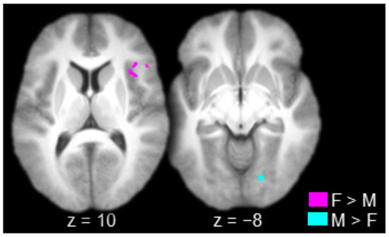 - Canli, T.; Desmond, J.E.; Zhao, Z.; Gabrieli, J.D.E. Sex differences in the neural basis of emotional memories. Proc. Natl. Acad. Sci. USA 2002, 99, 10789–10794. [Google Scholar] [CrossRef]