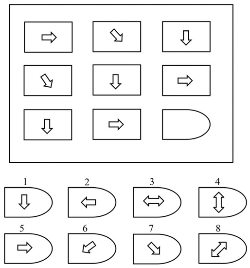 The test consists of a sequence of patterns, typically 48 patterns, that are separated into two tests. We denote them as Test 1 and Test 2. Test 1 was used as a practice test, and Test 2 was used to evaluate the cognitive ability. Test 1 uses 12 patterns. Test 2 uses the remaining 36 patterns to measure the cognitive ability of the subjects. Each of the 36 patterns consists of a 3 × 3 cell structure with a depiction of the geometrical shape. However, the cell at the bottom right is excluded, leaving it void or blank; the subject can choose a correct answer from eight different options and fill in the blank. For every correct option, the subject scores “1”, and for every incorrect option, the subject scores “0”. The subjects were required to complete Test 1 in 10 min and Test 2 in 40 min [