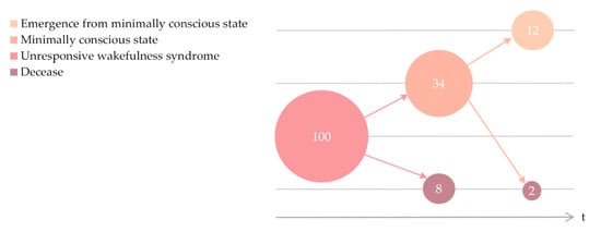 - Estraneo, A.; De Bellis, F.; Masotta, O.; Loreto, V.; Fiorenza, S.; Lo Sapio, M.; Trojano, L. Demographical and clinical indices for long-term evolution of patients in vegetative or in minimally conscious state. Brain Inj. 2019, 33, 1633–1639. [Google Scholar] [CrossRef]