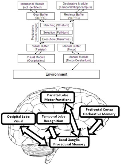 The organization of information in ACT–R (Adaptive Control of Thought–Rational). Adapted with permission from [].