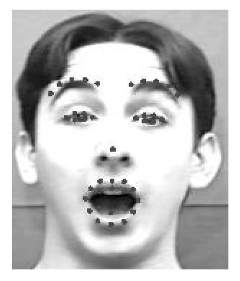 - Li, Y.; Wang, S.; Zhao, Y.; Ji, Q. Simultaneous Facial Feature Tracking and Facial Expression Recognition. IEEE Trans. Image Process. 2013, 22, 2559–2573. [Google Scholar]