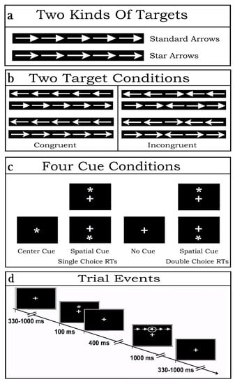 - Fan, J.; McCandliss, B.D.; Sommer, T.; Raz, A.; Posner, M.I. Testing the efficiency and independence of attentional networks. J. Cogn. Neurosci. 2002, 14, 340–347. [Google Scholar] [CrossRef]