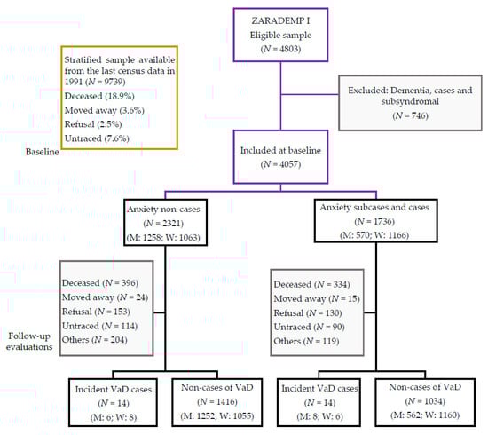 Zaragoza Dementia and Depression Project (ZARADEMP) study flow chart. Notes: M: men; W: women. VaD: vascular dementia.
