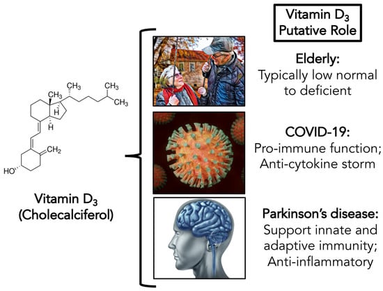 The potential roles of vitamin D3 supplementation in the elderly, with special consideration to those with Parkinson’s disease and at risk of developing COVID-19.