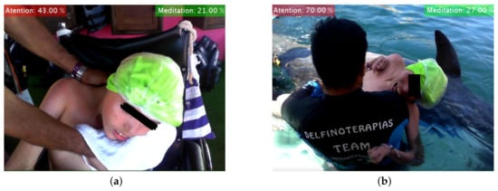 Method for obtaining EEG RAW samples. (a) ISCP patient At Rest or Before. (b) ISCP patient During a Dolphin-Assisted Therapy.