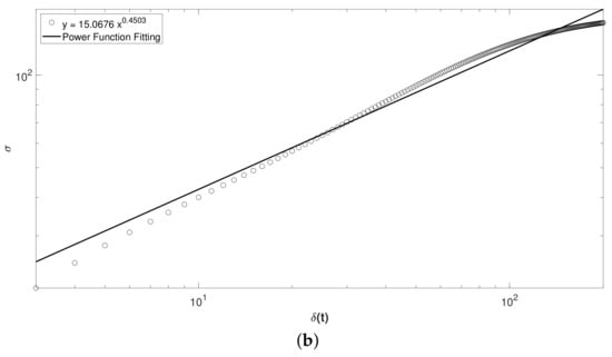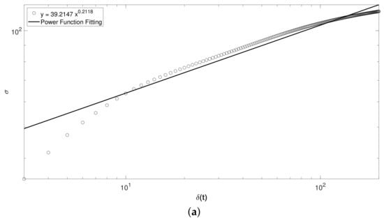 The values of H are limited to . Values of indicate antipersistent data behavior or negative correlations among them. Values of point out persistent data behavior or positive correlations among them. Moreover, values of show random walk behavior of the data or zero correlations among them.
