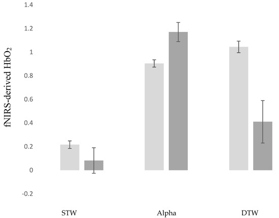 3.2. MCI Effects: fNIRS-Derived HbO2 across Task Conditions