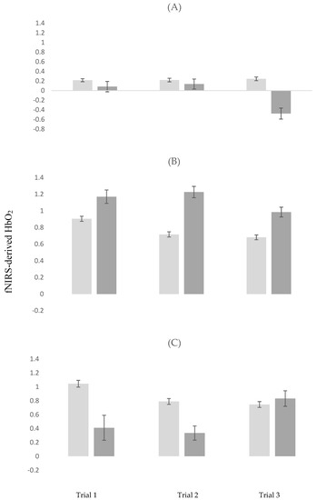 3.3. MCI Effects: fNIRS-Derived HbO2 across Repeated Trials