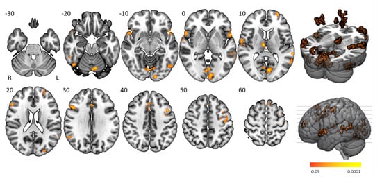 - Dosenbach, N.U.; Visscher, K.M.; Palmer, E.D.; Miezin, F.M.; Wenger, K.K.; Kang, H.; Burgund, E.D.; Grimes, A.L.; Schlaggar, B.L.; Petersen, S.E. A Core System for the Implementation of Task Sets. Neuron 2006, 50, 799–812. [Google Scholar] [CrossRef]