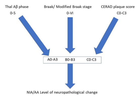 The following are available online at https://www.mdpi.com/2076-3425/10/8/479/s1, Table S1: Table to illustrate the Braak and Braak Staging for Neurofibrillary Tangles (NTs) and Threads in Alzheimer’s disease. Table S2: Modified Braak/Brain Net Europe neurofibrillary staging system for AD. Table S3: CERAD score for neuritic plaques. Table S4: Thal phases for brain parenchymal Aβ deposition.
