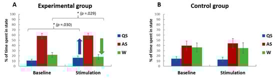 3.1. Effect of Auditory Stimulation on Sleep-Wake-States
