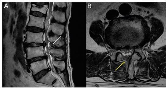 - Schizas, C.; Theumann, N.; Burn, A.; Tansey, R.; Wardlaw, D.; Smith, F.W.; Kulik, G. Qualitative Grading of Severity of Lumbar Spinal Stenosis Based on the Morphology of the Dural Sac on Magnetic Resonance Images. Spine 2010, 35, 1919–1924. [Google Scholar] [CrossRef]