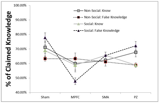 In conclusion, we report that the MPFC plays a large role in navigating the social world. Social pressure was found to influence false knowledge such that TMS stimulation applied to MPFC resulted in less over-claiming. These data indicated that the MPFC is involved in the interpretation of social pressure and suggestive of the importance the MPFC may play in evaluating social pressure to ‘be smart’ or ‘know it all’. While preliminary, these data are consistent with other research detailing overclaiming being tied to the MPFC.
