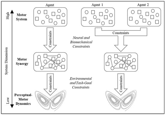 Illustration of the levels of constraint that result in synergy formation and task-specific perceptual-motor dynamics for both agent–environment and multiagent–environment systems. Adapted from Riley et al., 2011 []. See text for details.