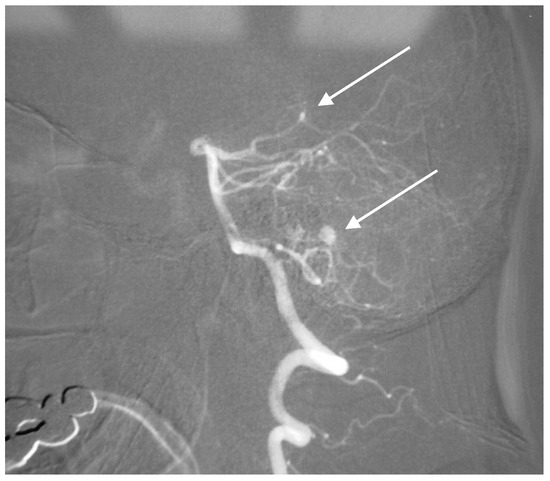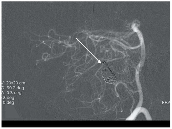 Figure 3). The patient was treated by microsurgical clipping and resection of the AVM. Her postoperative course was uneventful, and follow-ups are undertaken every year.