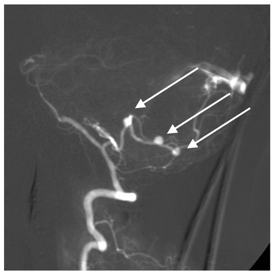Figure 4). AG revealed three aneurysms on the distal PICA (
