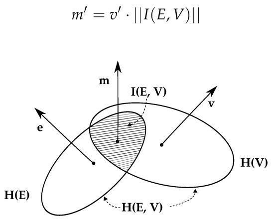 In association with the Corollary 1, for better visualization, Figure 4 illustrates the concept of MI with respect to the variables used in this study. E for EEG and V for vehicular data are depicting X and Y as described in Theorem 1. Entropy value for vehicular data and EEG are represented with and . Joint entropy consists of the union of the entropy spaces and mutual information in the intersecting space. Thus, is derived using Set Theory. e and v represent a single instance of EEG and vehicular signal, respectively, and m represents a single instance of , which is the mutual information shared by single instances e and v. Formally, is a matrix of order , where p and q are the number of vehicular and EEG features. respectively. Each row of the matrix represents the shared information between a single vehicular feature and every EEG features. Furthermore, , the norm of each row of was calculated which is a vector containing the collective magnitude of the shared information between each vehicular feature and all EEG features. The was further used to calculate new MI-based feature vector from vehicular features entirely with the following equation where is a new instance vector of vehicular features.
