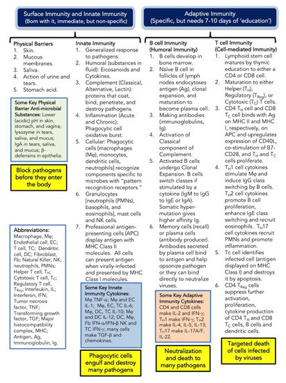 Defining the immune system is somewhat daunting, and describing it in detail is beyond the scope of this review [47]. The immune system protects the body against infection and non-native substances through intricate pathways that ultimately distinguish everything foreign from nonforeign within a given person. We present an overview of the main components of the immune system, especially those central to this review, outlining the interplay of white blood cells and some of the many biological responses that activate and control the immune system (Figure 2).