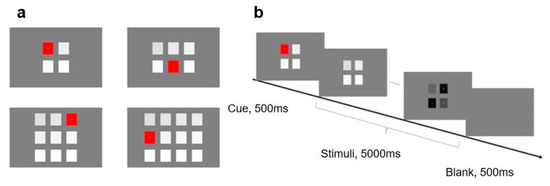 - Stormer, V.S.; Alvarez, G.A. Feature-Based Attention Elicits Surround Suppression in Feature Space. Curr. Biol. 2014, 24, 1985–1988. [Google Scholar] [CrossRef]