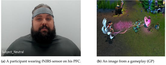The motivation of the experiment is to be able to ascertain the expertise level of the participants in playing the game LoL using only their brain data, and emotions predicted scores derived from their facial expressions. In order to achieve this goal (i.e., determine a participant’s expertise level using their brain data, and emotion scores) a fNIRS sensor is placed on PFC of each participant as can also be seen in Figure 3. The reason for recording brain activity of all participants from PFC is because it is the part of brain associated with concentration and planning [33]. Therefore, fNIRS sensor placed on PFC will record the differences in the concentration of haemoglobin molecules in PFC region for users with varying expertise levels. The variation in the fNIRS data, owing to different expertise level of participants, will become the basis for classification of their expertise level.