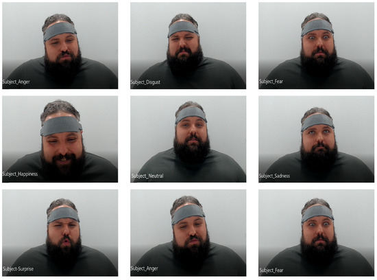 An array of representative facial expressions of a participant’s seven emotions: Anger, Disgust, Fear, Happiness, Sadness, Surprise, and Neutral. The participant gave his consent to share his images.