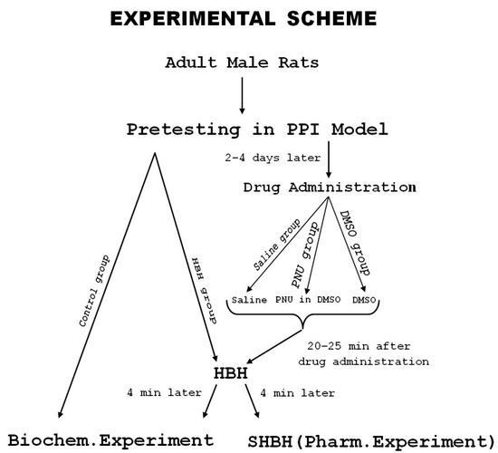 Some days after PPI testing, the rats were subjected to subsequent experimental procedures. All data were obtained in a blind manner. In our experiments, each experimenter at his/her stage of obtaining experimental data did not know the key characteristics of the tested rat because an experimental group assignment was performed by a different person. Moreover, the experimental animals passed into a new environment after each test.
