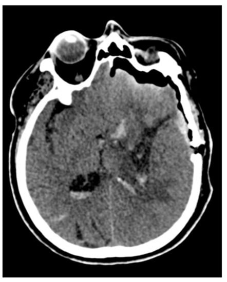 - Mendelow, A.D.; Gregson, B.A.; Rowan, E.N.; Murray, G.D.; Gholkar, A.; Mitchell, P.M.; Mendelow, A.D.; Gregson, B.A.; Rowan, E.N.; Murray, G.D.; et al. Early surgery versus initial conservative treatment in patients with spontaneous supratentorial lobar intracerebral haematomas (STICH II): A randomised trial. Lancet 2013, 382, 397–408. [Google Scholar] [CrossRef]