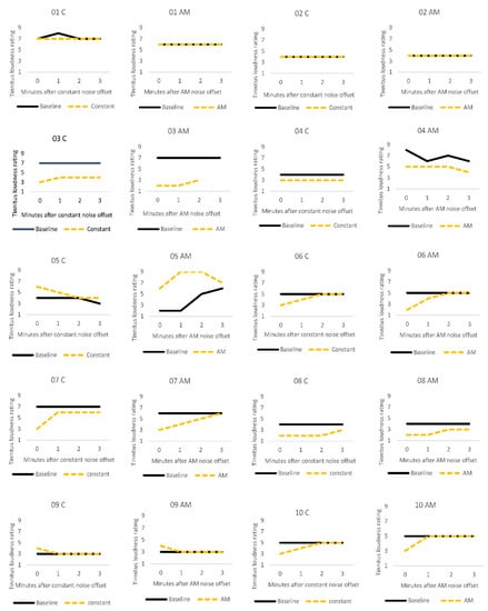 - Neff, P.; Zielonka, L.; Meyer, M.; Langguth, B.; Schecklmann, M.; Schlee, W. Comparison of Amplitude Modulated Sounds and Pure Tones at the Tinnitus Frequency: Residual Tinnitus Suppression and Stimulus Evaluation. Trends Hear. 2019, 23, 233121651983384. [Google Scholar] [CrossRef] [PubMed]