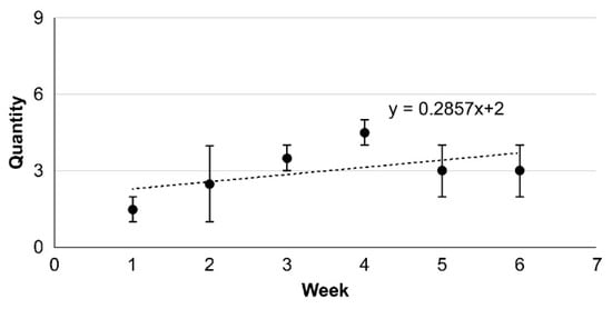 The approach comprised (1) a 10 min task of stacking square blocks with a base length of 3 cm used in a course cube test with the left hand, (2) a 10 min task of discriminating between five sandpapers using the ventral side of the left index finger, and (3) a 10 min task of placing a 25 mm long, 3 mm diameter iron peg (Sakai Medical) on a board with two vertical lines. The task of inserting the iron peg into a board with two vertical lines of 25 holes (peg manipulation practice) was performed with the left-hand side. A Yubi-Recorder was attached to the DIP joint of the index finger, and tactile information of the ventral skin of the index finger was detected by the tactile sensor as vibrations. Tactile stimuli were synchronously presented to the body through vibrations; the assembly site of the vibrator was the left acromion or the left temporal bone. Sense discrimination [] has been used in previous studies; considering this, five types of sandpaper with different roughness values were applied to the left acromion and right temporal skeleton. These were judged to be the areas where the roughness of the sandpaper could be best identified. The intervention period lasted six weeks, and the approach was performed five times per week.